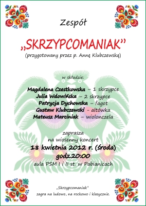 Skrzypcomaniak zaprasza 19.X.2016 na godz. 20:00 do auli PSM na Koncert Jesienny. Wystąpią również młodzi skrzypkowie z klasy prof. M.Karwat.