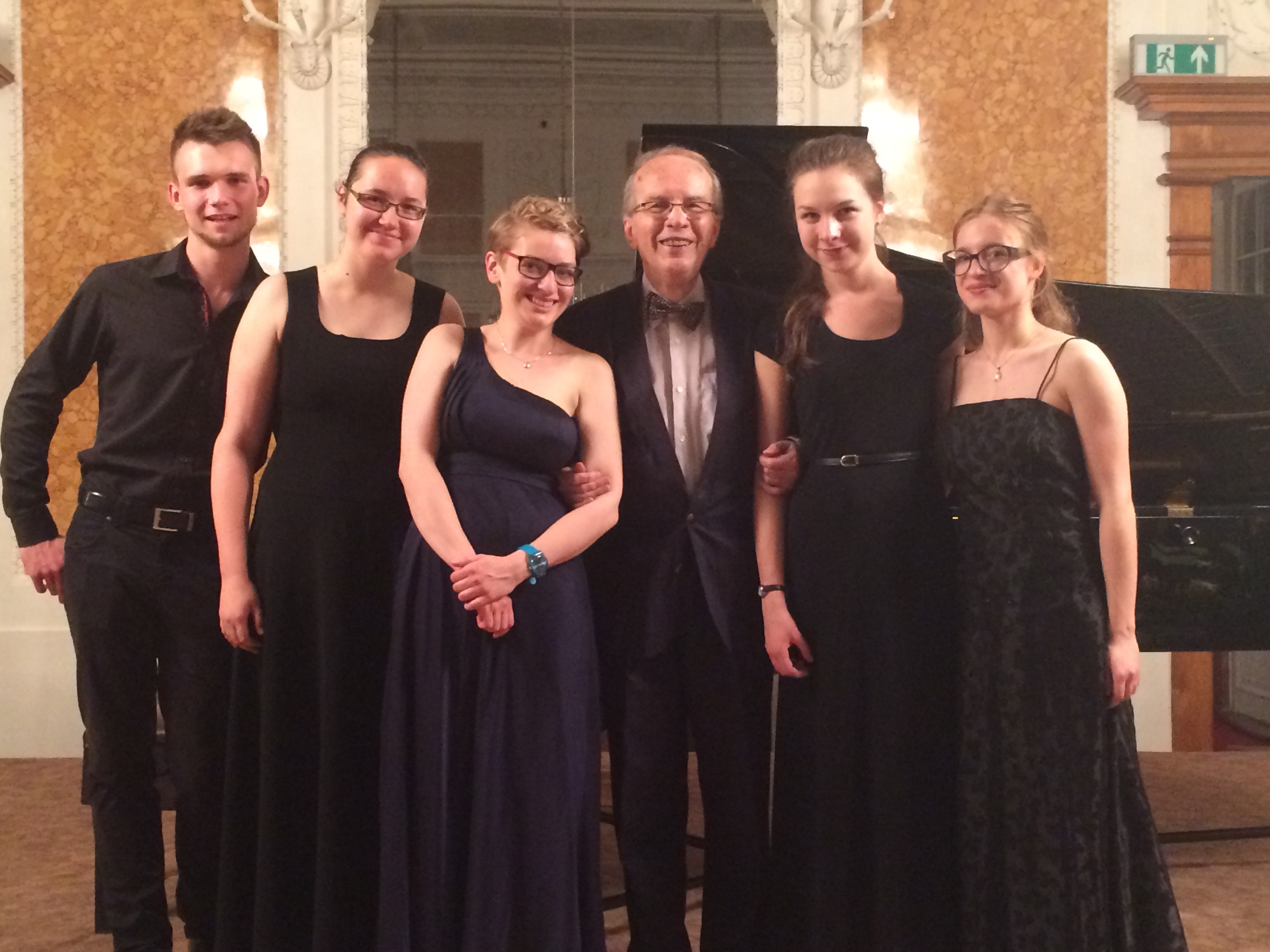 Zespół ..wespół.. wzespół.. nic, tylko gratulować- uroku i wdzięku (jeśli idzie o fotkę Nie byłam, nie słyszałam, ale znając Wybitnego Profesora Stefana Kamasa i nazwiska młodych altowiolistów (..ek) na czele z Gustawem Klubczewskim można wyobrazić sobie jak piękny, klimatyczny był Koncert w Sali Balowej w Zamku!