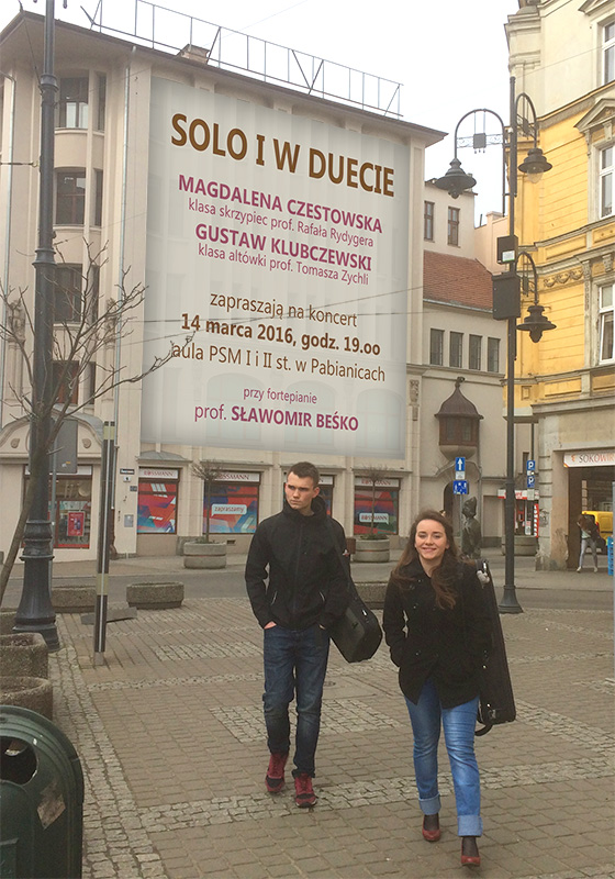 | 19 kwietnia 2016 r. odbył się koncert w Miejskim Ośrodku Kultury w Pabianicach, na którym wystąpili uczniowie PSM I i II st. w Pabianicach. Gwiazdą wieczoru był utalentowany, młody pianista Aleksander Duniec z klasy fortepianu prof. Małgorzaty Adamek, który wraz z orkiestrą szkolną pod dyrekcją Marka Głowackiego wykonał koncert D-dur Haydna. |